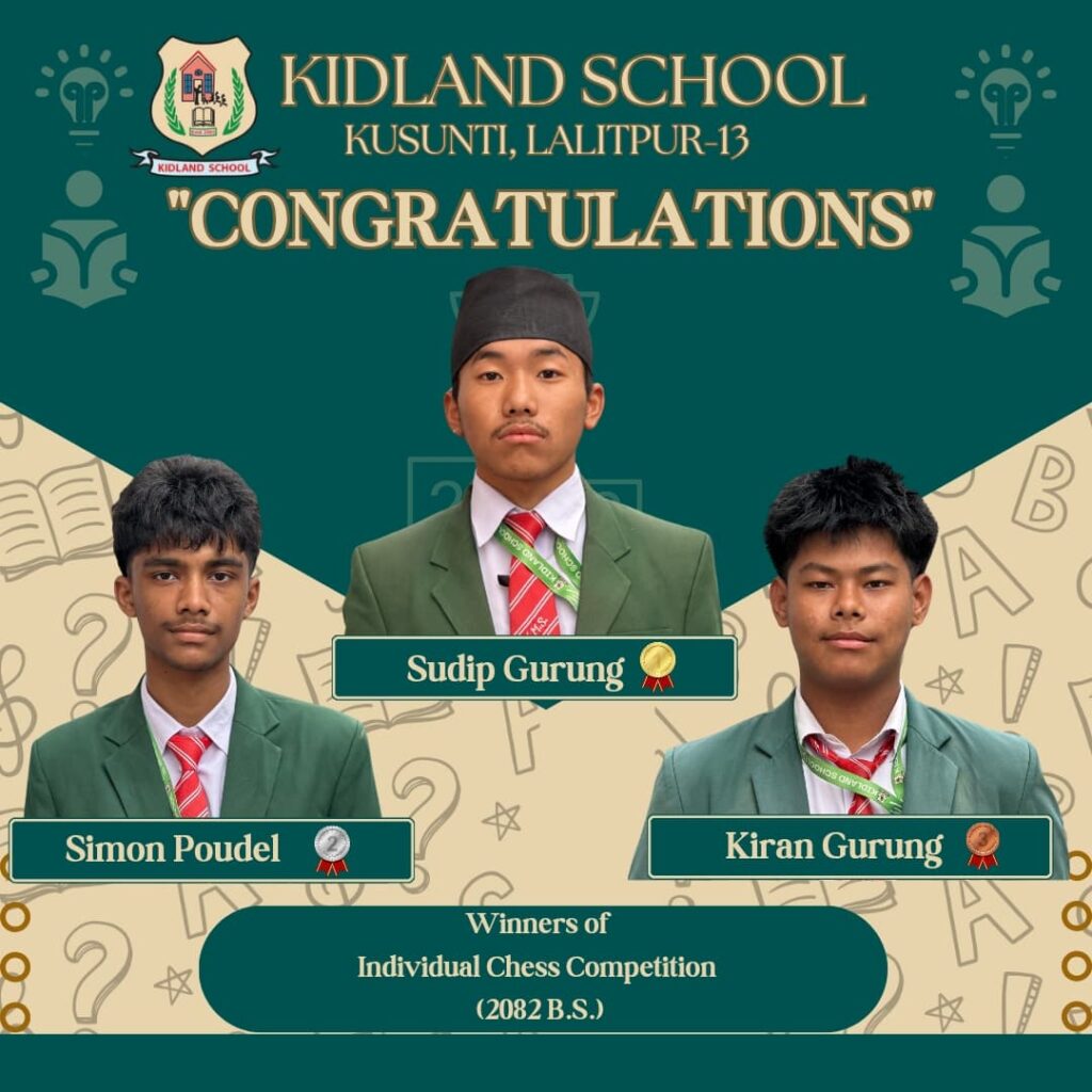 Today, Kidland Secondary School came alive with the intense silence and sharp focus that only a chess competition can bring. We proudly hosted the Individual Chess Tournament 2082, featuring two categories: Seniors (Classes 8, 9, 10) and Juniors (Classes 5, 6, 7). The event was a showcase of strategy, patience, and mental agility—hallmarks of the beautiful game of chess.